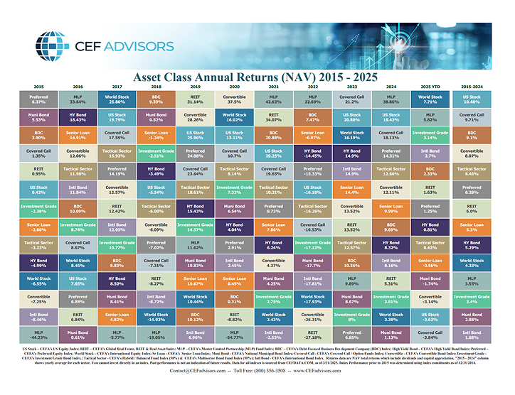 - Strategy: The fixed-capital base allows CEFs to use leverage and access less-liquid or specialized markets (e.g., private credit, energy infrastructure, preferred equity).