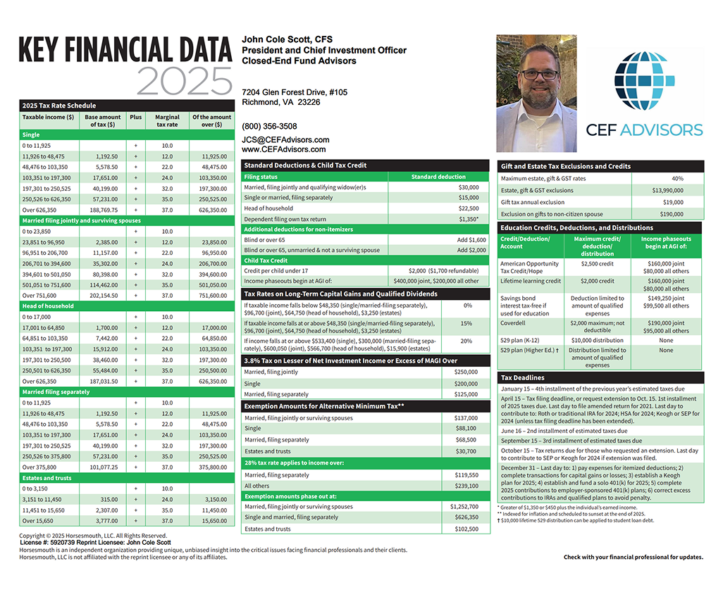 Bottom Line: CEFs offer income, diversification, and unique opportunities when used thoughtfully. They reward ongoing monitoring, an understanding of structure, and careful manager and sector selection.